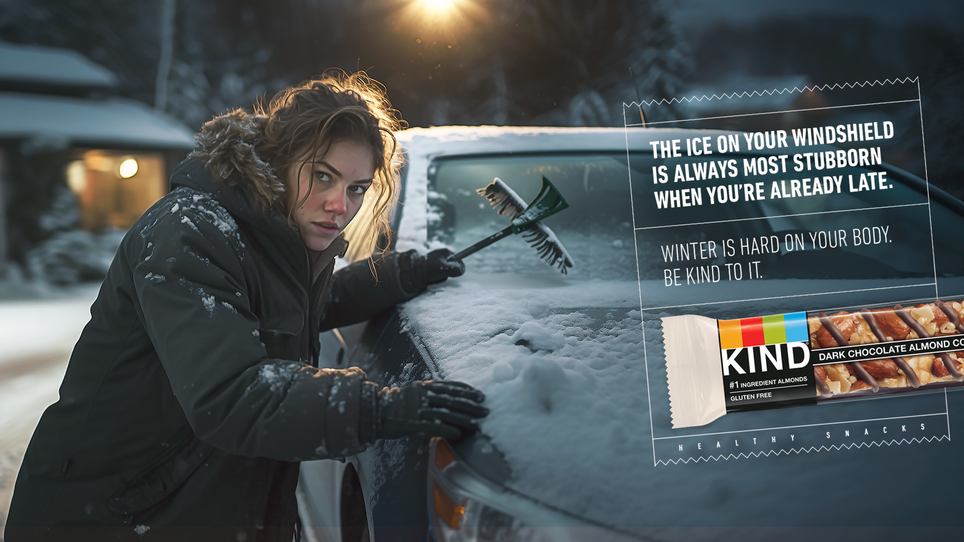 We challenged the romanticized version of the season by highlighting its everyday realities—from stressful mornings to freezing commutes. As cravings for comfort food peak, we reframed winter as a moment to treat your body better, not worse. Through a series of print executions, the campaign pairs relatable winter struggles with a simple reminder: be kind to your body.
